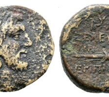 O primeiro tipo mostrava a cabeça do deus Zeus e o monograma da Liga Aqueia (uma confederação política do Peloponeso) e o último trazia a cabeça de Hércules e uma ânfora (um contêiner de transporte) ladeada pelos gorros do Dióscuro, os gêmeos Castor e Pólux da mitologia.