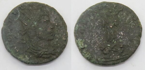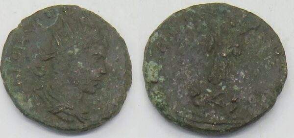Claudius II, AE antoninianus, Cyzicus. IMP CLAVDIVS PF AVG, radiate head right, three dots below / VICTOR GERMAN, Trophy between two seated captives. RIC V-1, 247 Cyzicus. |