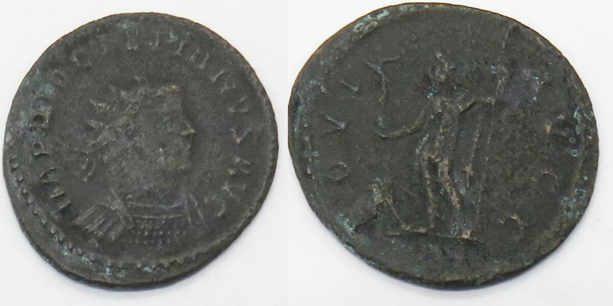 RIC V 28, A rad.cuir right Cohen 147 | Diocletian AE Antoninianus. Lyons mint, 290-291 AD. IMP DIOCLETIANVS AVG, radiate cuirassed bust right / IOVI AVGG, Jupiter standing left holding Victory on globe and sceptre, eagle at foot left. Mintmark A. RIC V 28; Cohen 147, Bastien 315. |