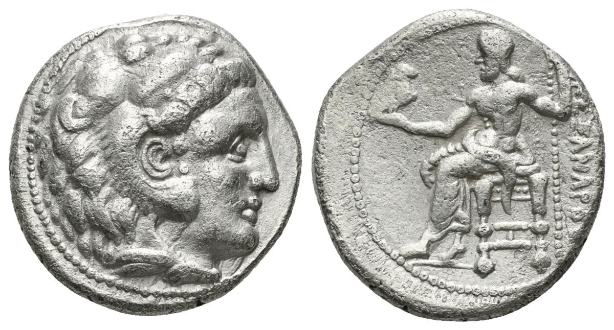 KINGS OF MACEDON. Alexander III 'the Great' (336-323 BC). Tetradrachm. Obv: Head of Herakles right, wearing lion skin. Rev: AΛΕΞΑΝΔΡΟΥ. Zeus seated left, holding sceptre and eagle. 16,43 g
