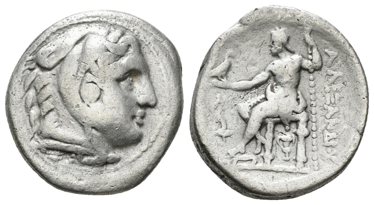 KINGS OF MACEDON. Alexander III 'the Great' (336-323 BC). Tetradrachm. Obv: Head of Herakles right, wearing lion skin. Rev: AΛΕΞΑΝΔΡΟΥ. Zeus seated left, holding sceptre and eagle. 16,49 g