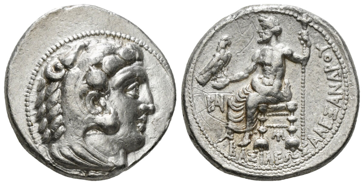 KINGS OF MACEDON. Alexander III 'the Great' (336-323 BC). Tetradrachm. Obv: Head of Herakles right, wearing lion skin. Rev: AΛEΞANΔPOY. Zeus seated left, holding sceptre and eagle. 17,17 g - 26,11 mm