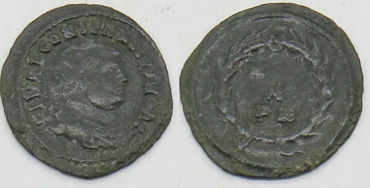 Moeda AE fraction do imperador romano Constantius I, cunhada em Cartago