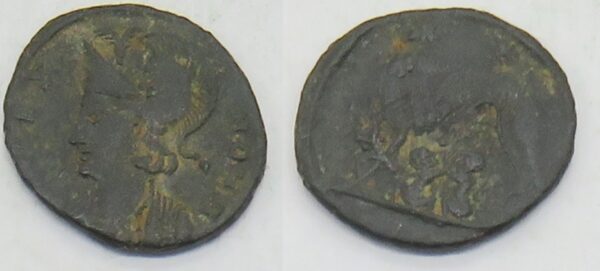 Aquileia RIC VII 128, P City Commemorative, Aquileia, 334-335 AD. VRBS ROMA, helmeted bust of Roma left, wearing imperial mantle / No legend, she-wolf standing left, suckling Romulus and Remus, two stars above. Dot at top right. Mintmark AQP(?). RIC VII Aquileia 128; Sear 16504.