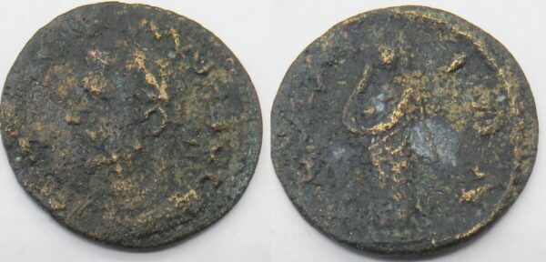 SAMOS 253 - 268 A.DIONIA. Samos. Gallienus (253-268). Ae.Obv: AYT K O IK AIHNOC. Laureate, draped and cuirassed bust left.Rev: CAMI. Nemesis standing facing. SNG Copenhagen 1807.Condition: Very fine. Weight: 5,63gms g. Diameter: 25 mm.