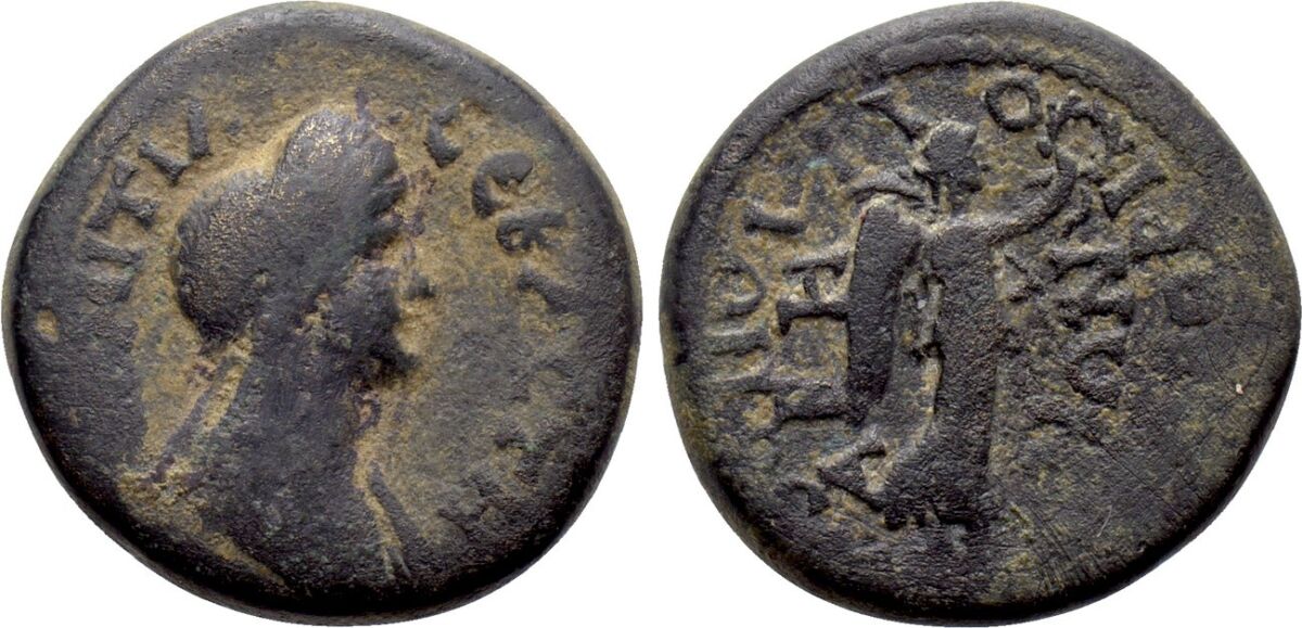 Moeda provincial rara da consorte romana Domitia Augusta , cunhada na Caria