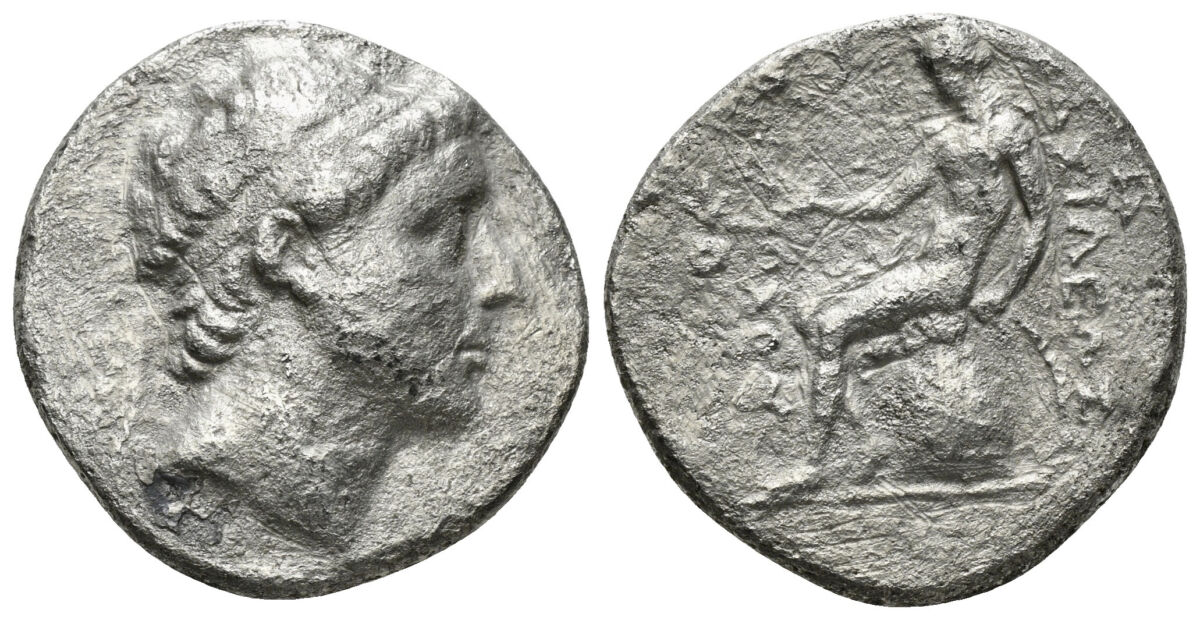 SELEUKID KINGDOM. Antiochos III 'the Great' (222-187 BC). Tetradrachm. Antioch on the Orontes. Obv: Diademed head right. Rev: BAΣIΛEOΣ / ANTIOXOY. Apollo, testing arrow and placing hand on grounded bow, seated left on omphalos; monogram to outer left. 15,12 g