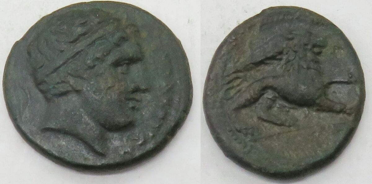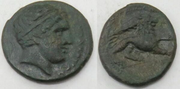 Calciati 150 | Sicily, Syracuse. ca 289-287 BC. AE 24mm. ΣYΡAKOΣIΩN, diademed head of Herakles left; star behind / Lion walking right; club above, torch in ex. SNG ANS 738,Weight 9,09g ,SNG ANS 732; Calciatti pg. 287, 150. VF |